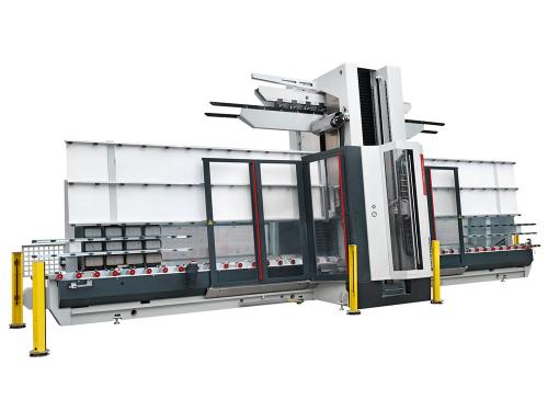 el sistema de carros independientes garantiza una calidad de mecanizado inigualable. El reposicionamiento dinámico de los tanques de aspiración permite aumentar la productividad final del producto, procesar vidrio el vidrio inestable inprocesable en máquinas verticales tradicionales y aumentar la precisión de mecanizado final.